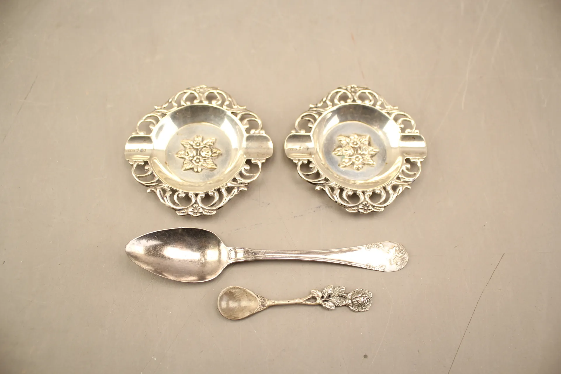 49. Askfat 2 st och skedar 2 st i silver