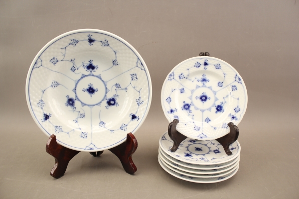 100. Assietter 6 st och djup tallrik "Musselmalet" Bing & Gröndahl
