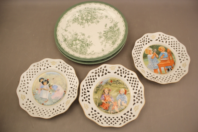 130. Assietter Jenny Nyström 3 st och Mattallrikar Rörstrand "Gröna Anna" 3 st