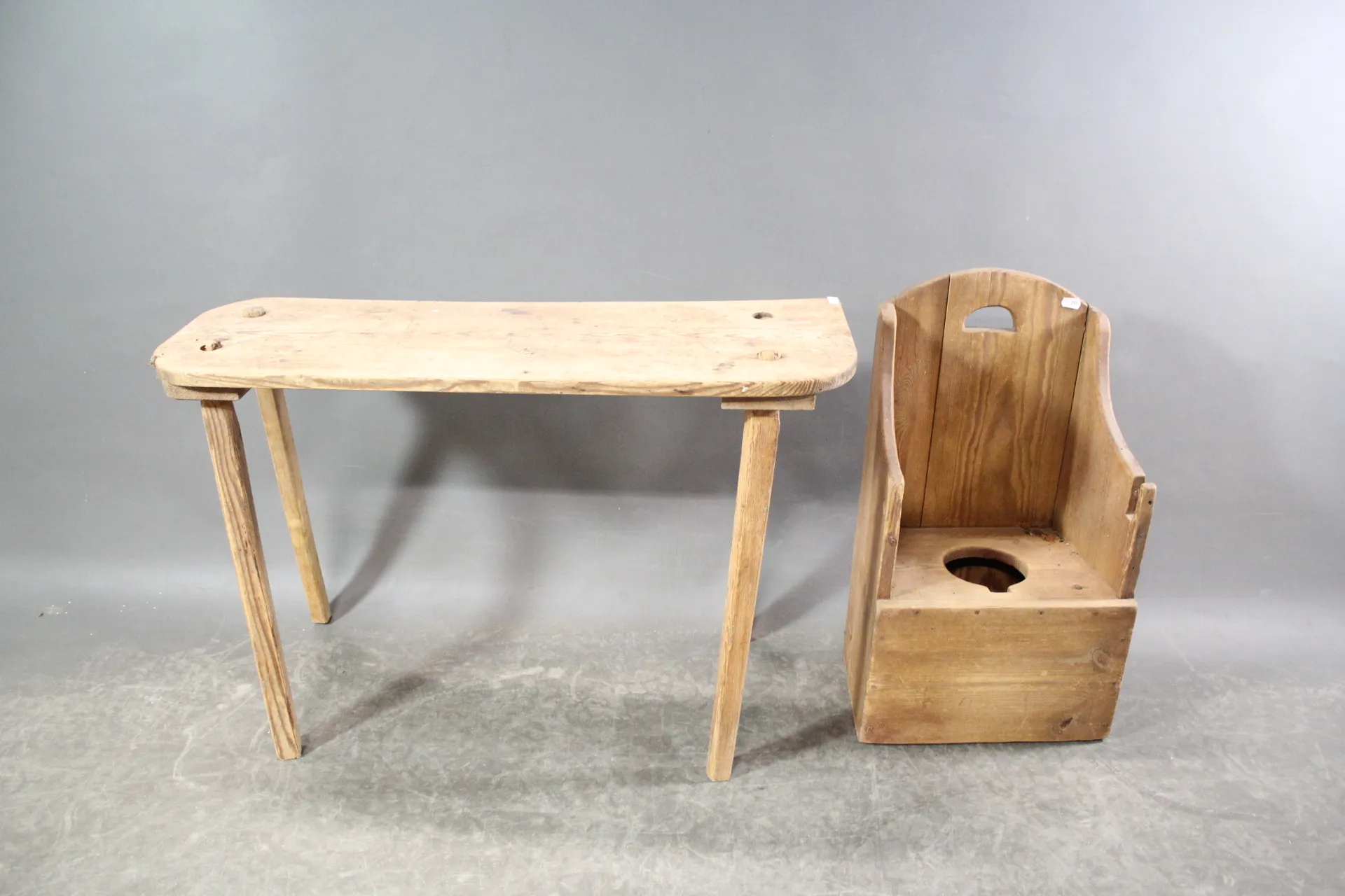 261. Bänk och pottstol i furu