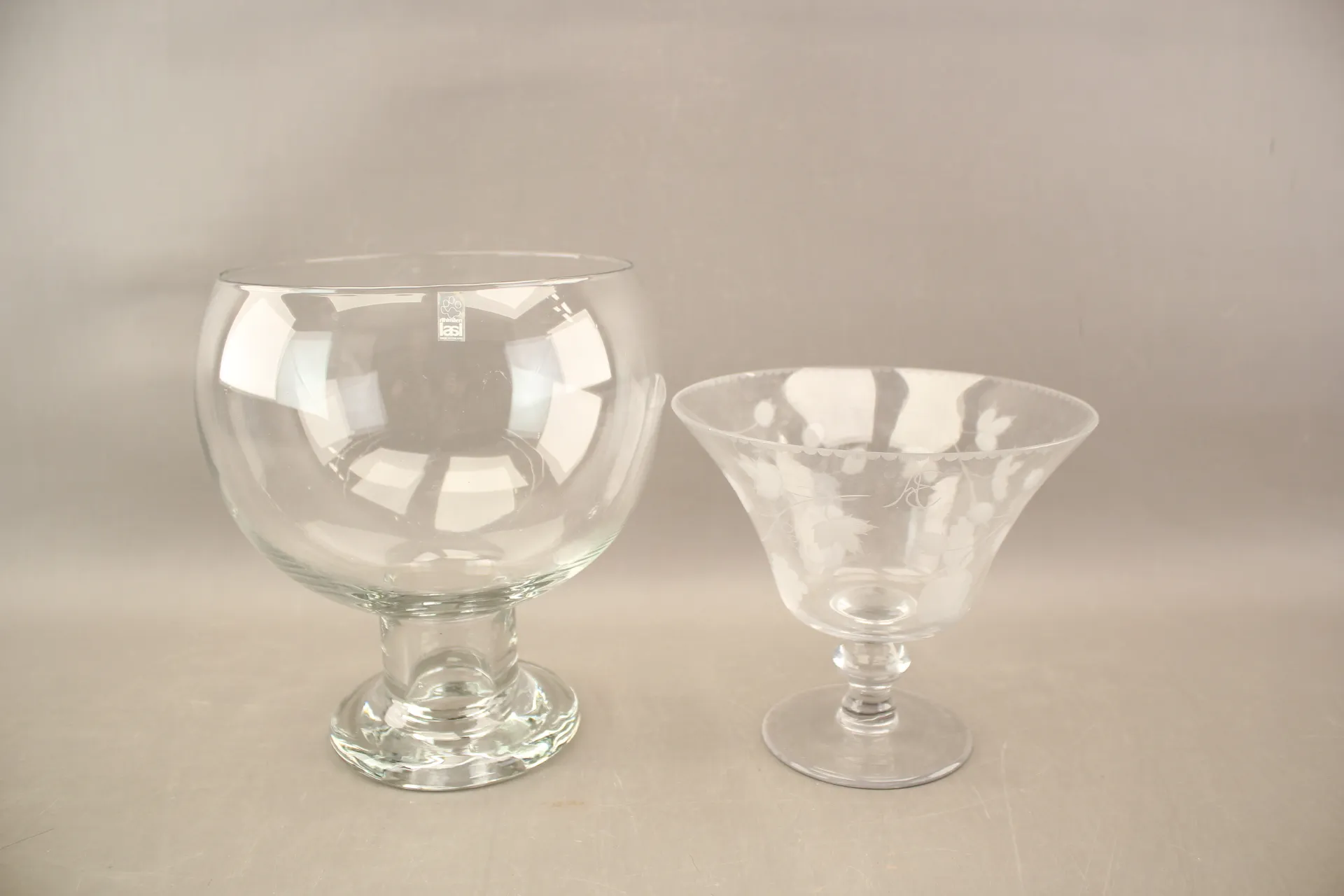357. Bålskål Riihimäen Lasi "Old king Cole" Erkkitapio Siiroinen och skål med slipad dekor