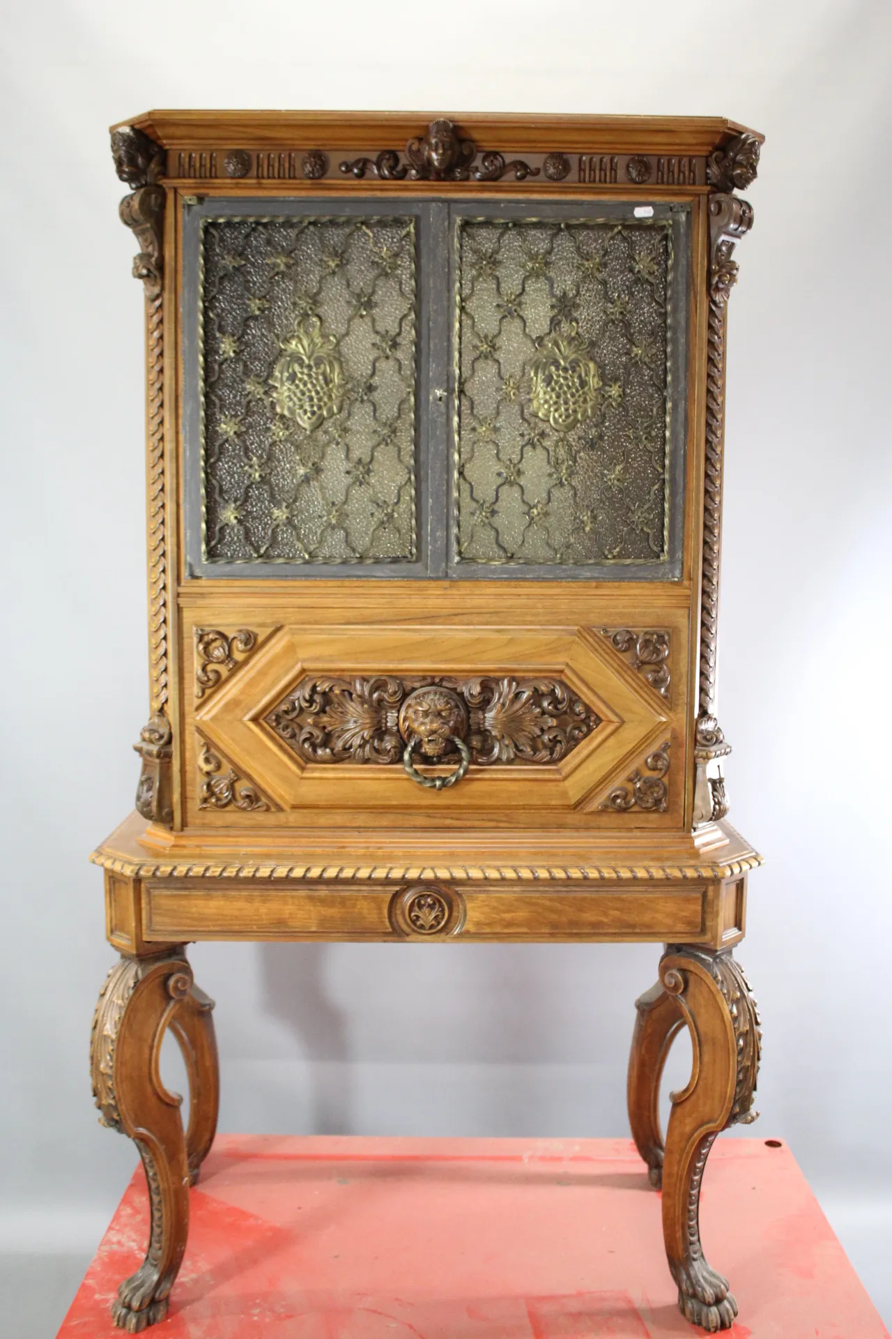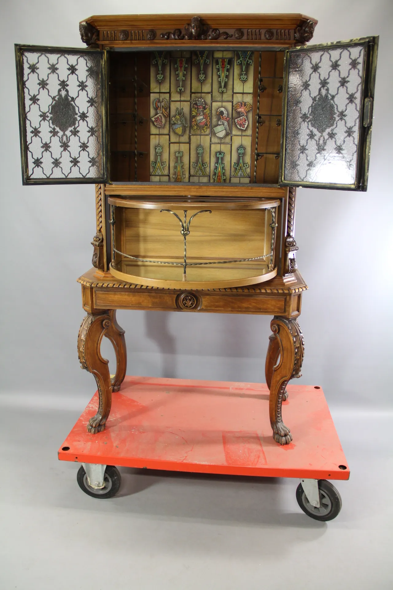 142. Barskåp Renässansstil med snidade detaljer och glasdörrar 1900-tal