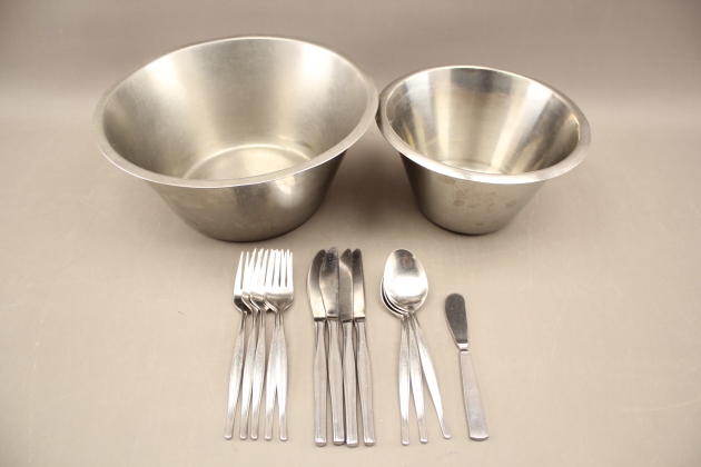 206. Bestick Gense 13 delar och bunkar i rostfritt 2 st