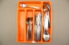 Matgafflar 11 st, matknivar 11 + 3 st, matskedar 21 st, förrättsgafflar 4 + 1 st