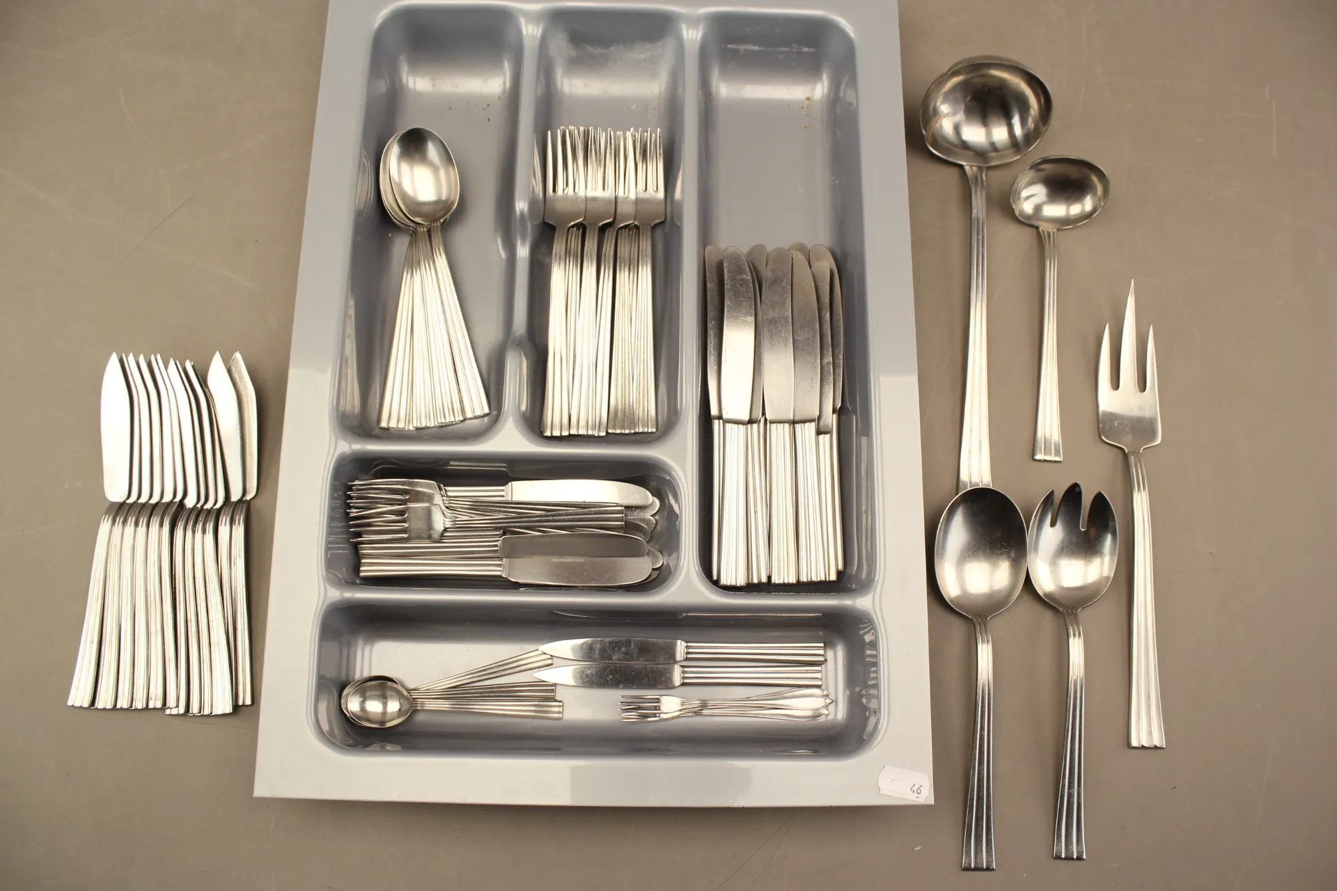 46. Bestickuppsättning i rostfritt Gense "Thebe" Folke Arström 66 delar