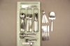 Matgafflar 12 st, matskedar 11 st, matknivar 9 st, dessertskedar 12 st, förrättsknivar 6 st, förrättsgafflar 4 st, smörknivar 3 st, kaffeskedar 4 st, plockgafflar 7 st och osthyvel