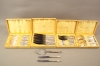 Matgafflar 12 st, vikt: 449,8 g, matknivar 12 st, vikt: 568,1 g, vägda med rostfria blad, matskedar 12 st, vikt: 473,7 g, förrättsgafflar 7 st, vikt: 146,6 g, förrättsknivar 6 st, vikt: 181,4 g, vägda med rostfriablad, smörknivar 2 st, vikt: 79,6 g, vägda med rostfria blad och osthyvel, vikt: 77,5 g, vägd med rostfrittblad, totalvikt: 1946,7 g