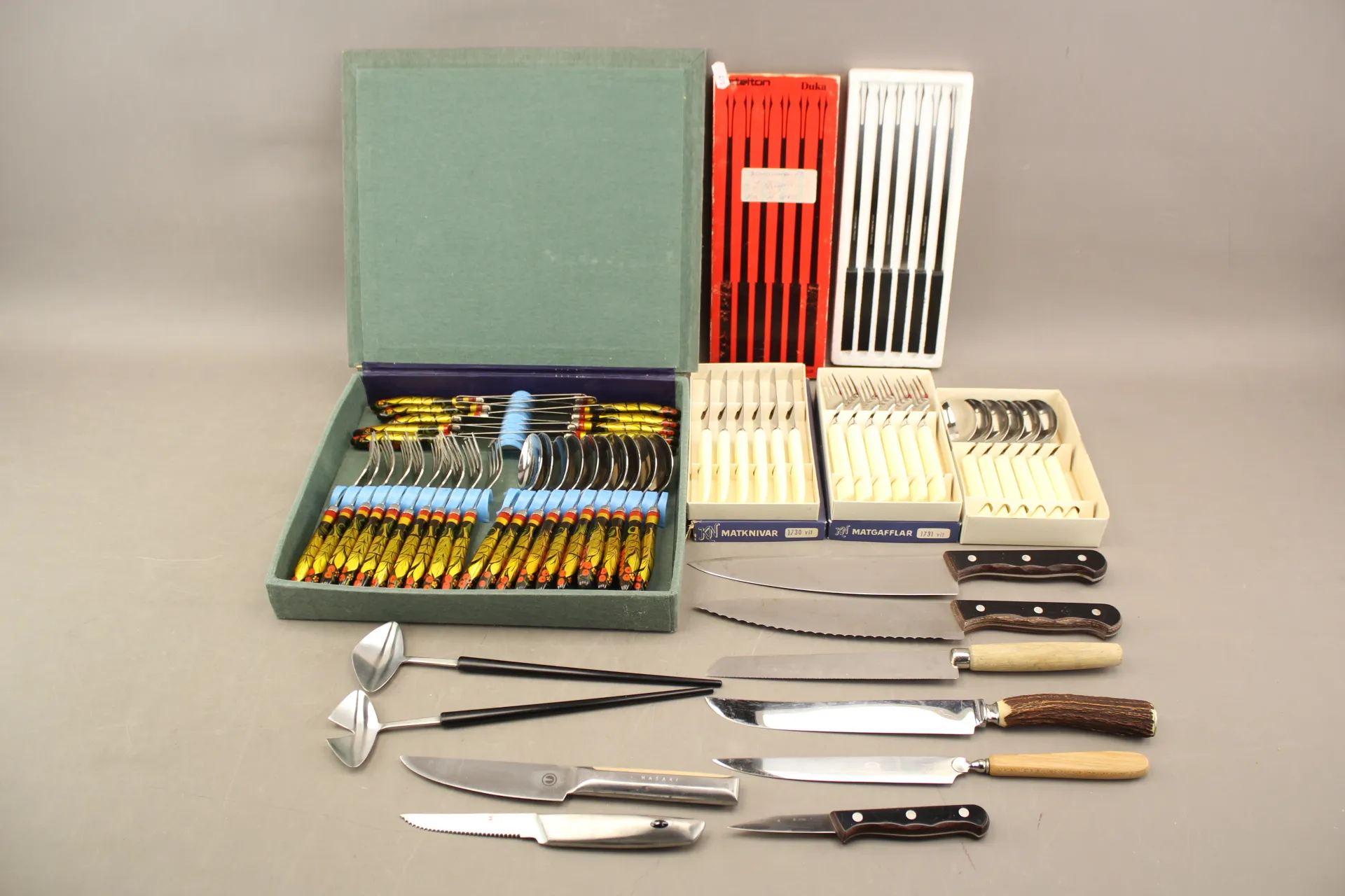 490. Bestickuppsättning, kockknivar, mm, bla Gense och Hasaki