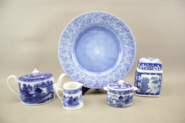 168. Blåvitt porslin 5 delar bla Mateus och Kina