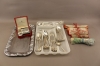 497. Blandade bestick i nysilver, bestickfodral 5 st och bricka