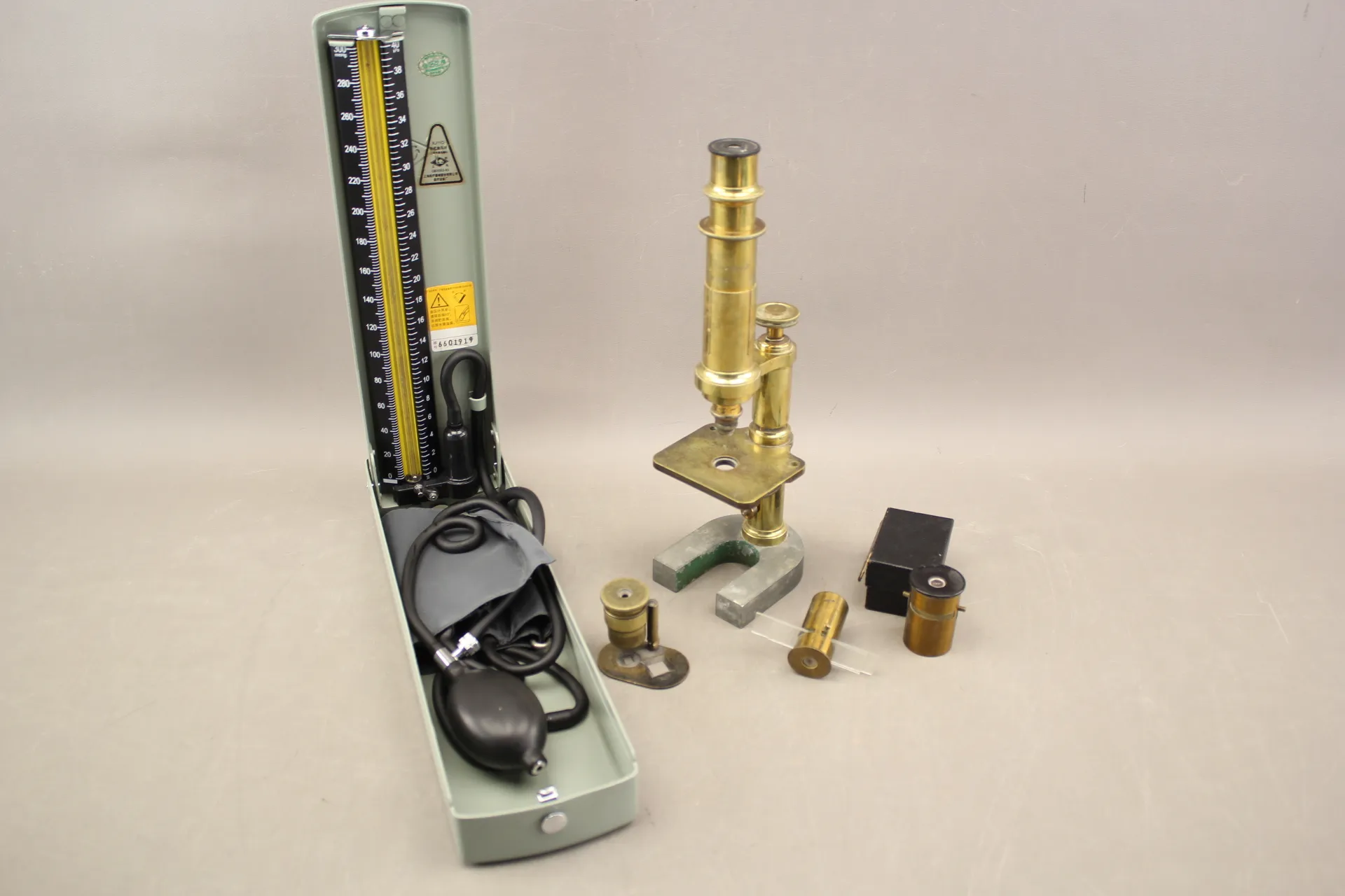 53. Blodtrycksmätare och mikroskop med tillbehör