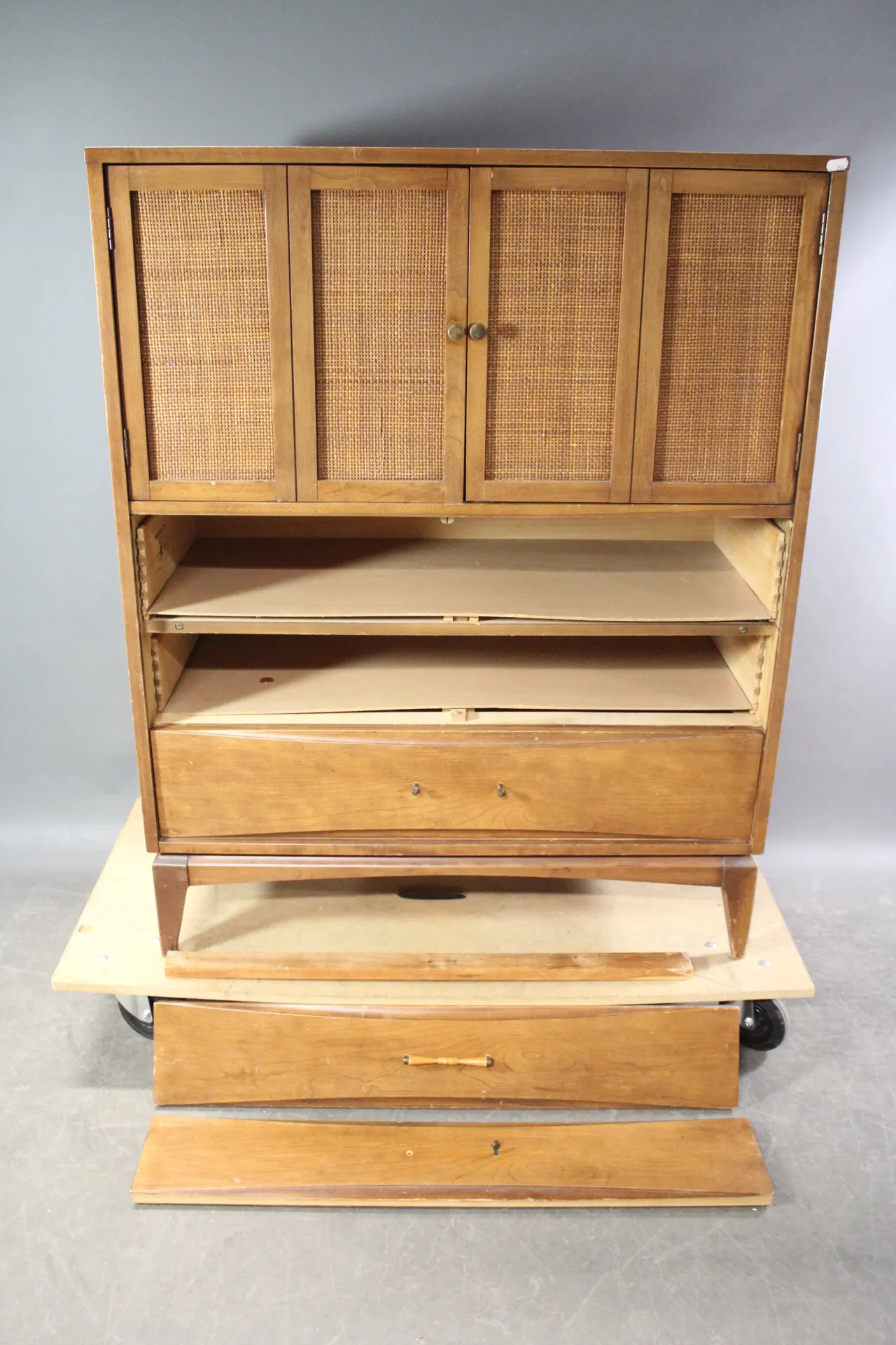 356. Bokhylla med rottingluckor märkt Kroehler