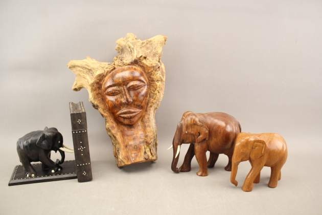 148. Bokstöd, väggdekoration och skulpturer 2 st i trä