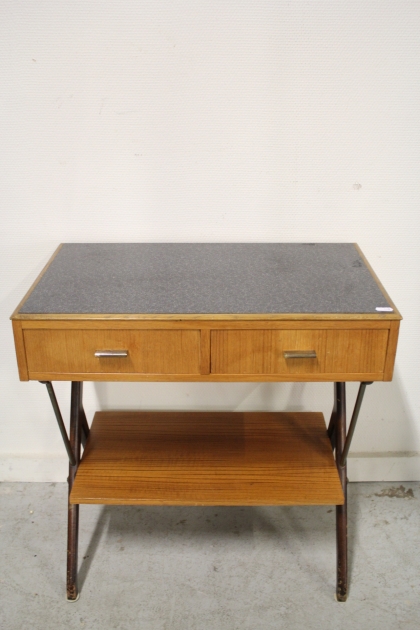 140. Bord med lådor och tidningshylla i teak 1950/1960-tal