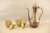 370. Bordsdekorationer i mässing 2 st och kanna i koppar