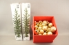 472. Bordsjulgranar 2 st med belysning och låda med julgranskulor