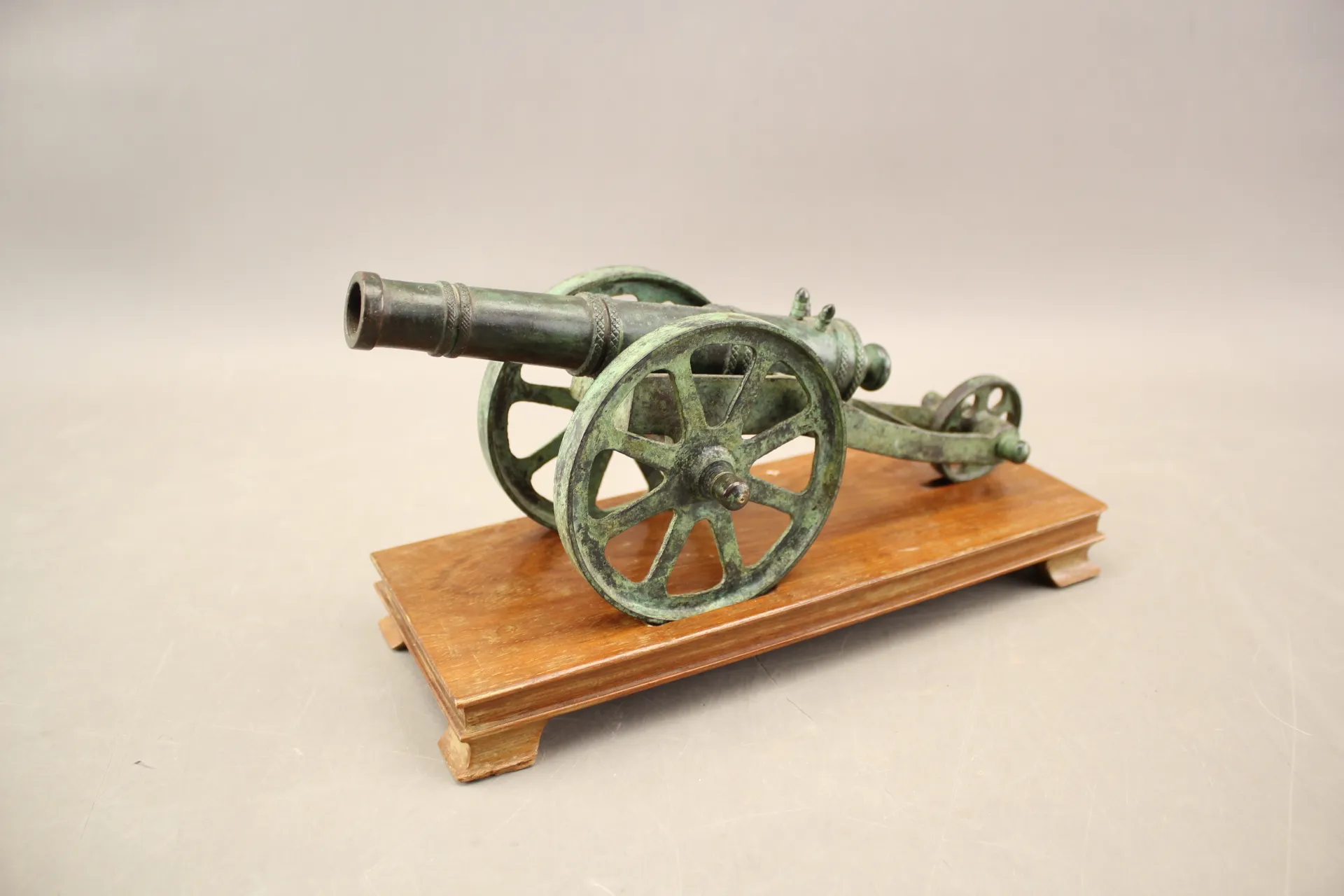 191. Bordskanon i metall på träsockel
