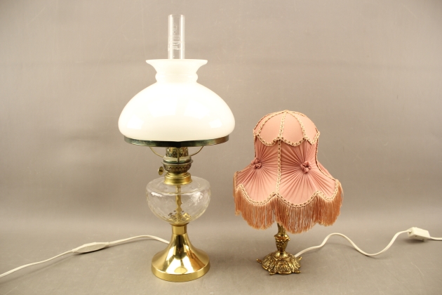 142. Bordslampa GMA 404 i mässing och fotogenlampa med indragen el