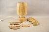 74. Bordslampa i furu och dekorationer i trä 4 st