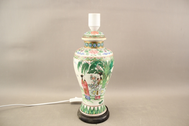 206. Bordslampa i porslin med asiatiskt motiv