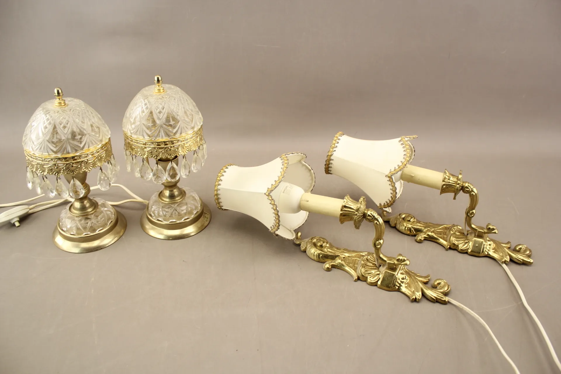 393. Bordslampor 1 par och vägglampor 1 par i bla mässing