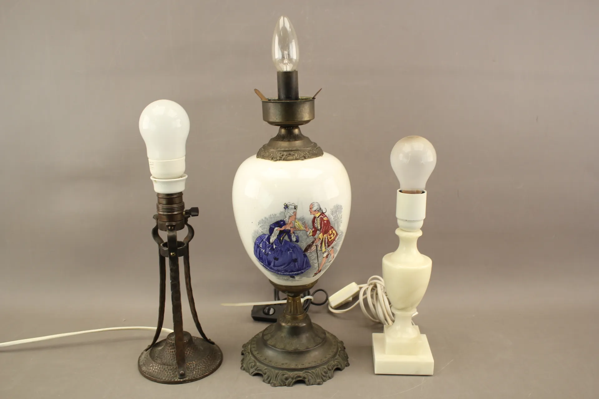 411. Bordslampor 3 st i bla metall