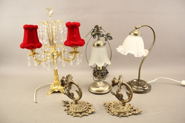 327. Bordslampor 3 st och väggljusstakar 1 par