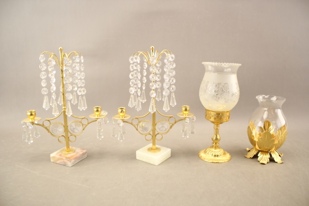 137. Bordslyster 2 st och ljuslyktor 2 st