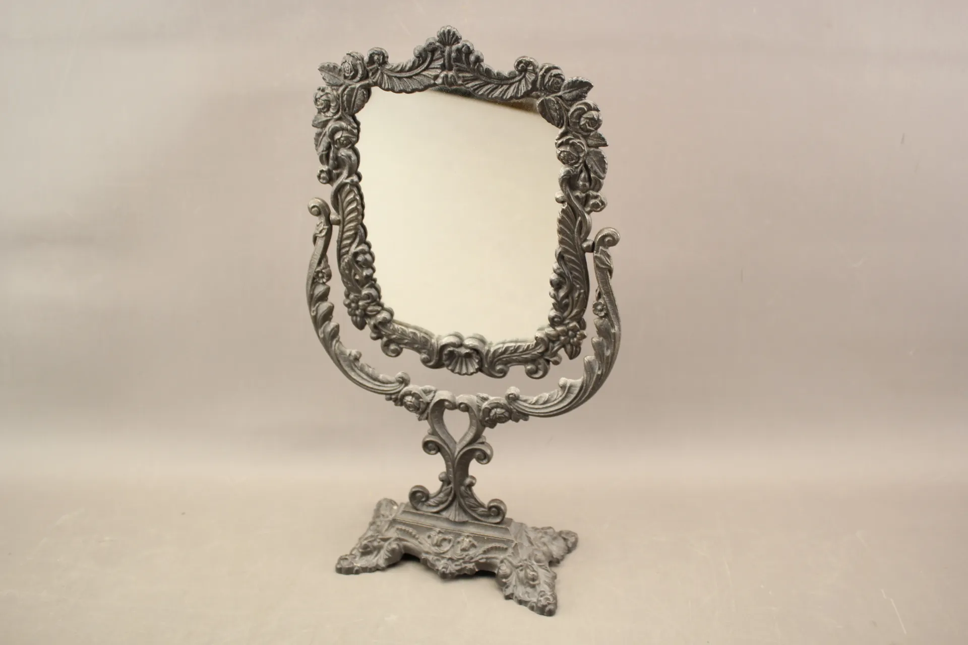 139. Bordsspegel i metall Rokokostil 1900-tal Brevens Bruk