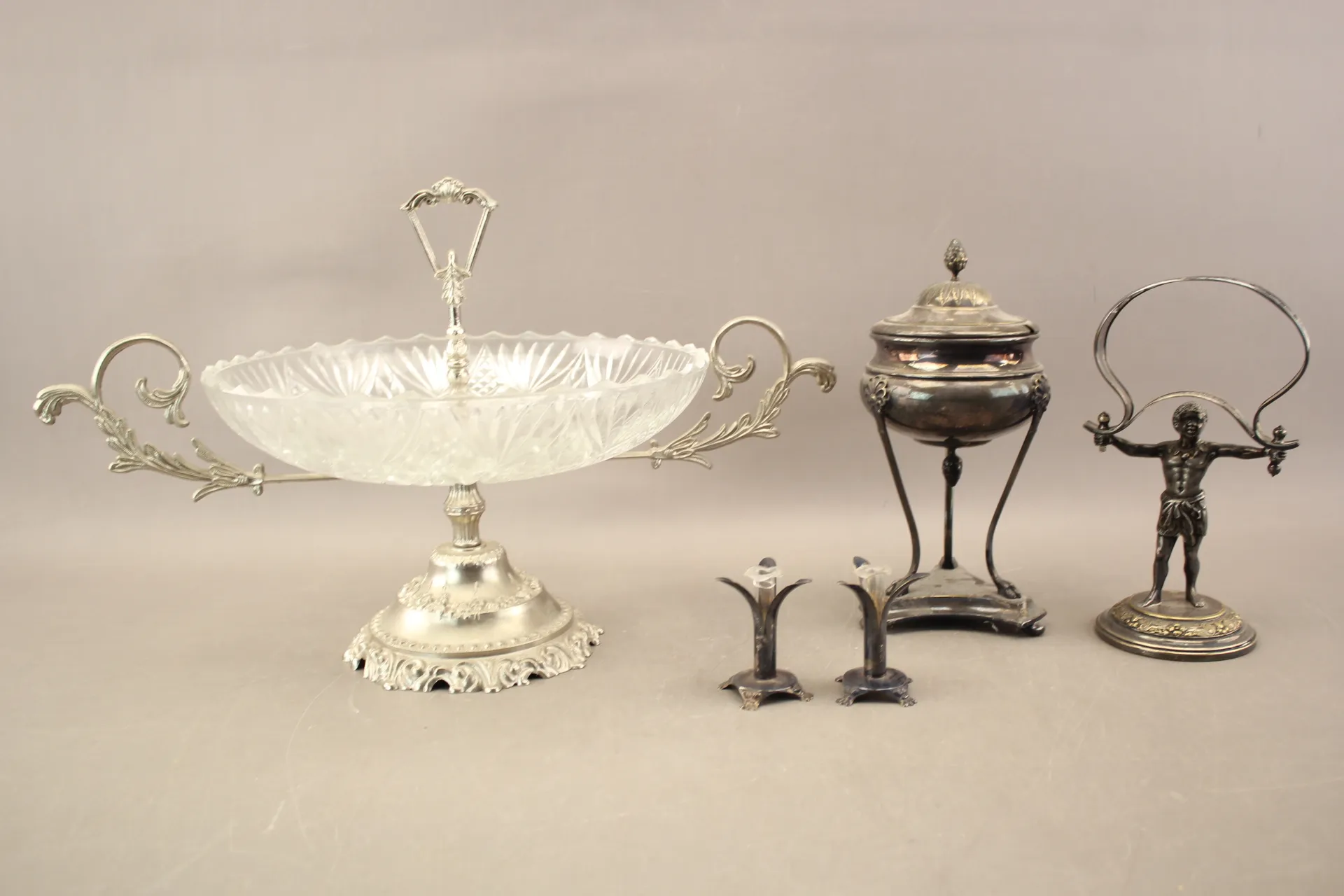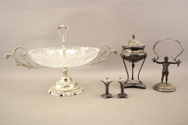 101. Bordsuppsats, sockerskål, knivställ och ljusstakar 1 par i bla NS