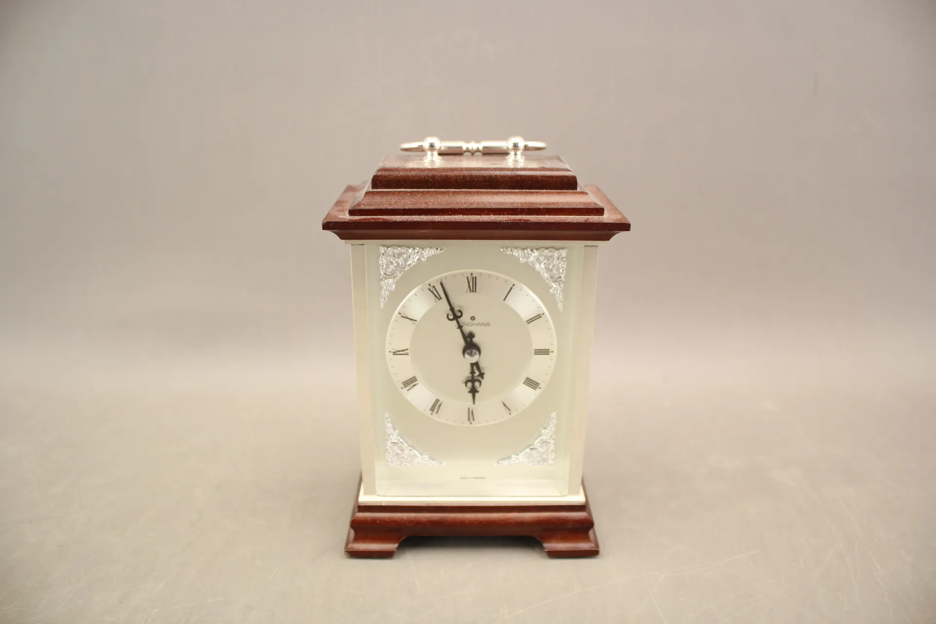 142. Bordsur i trä och metall Junghans Quartz