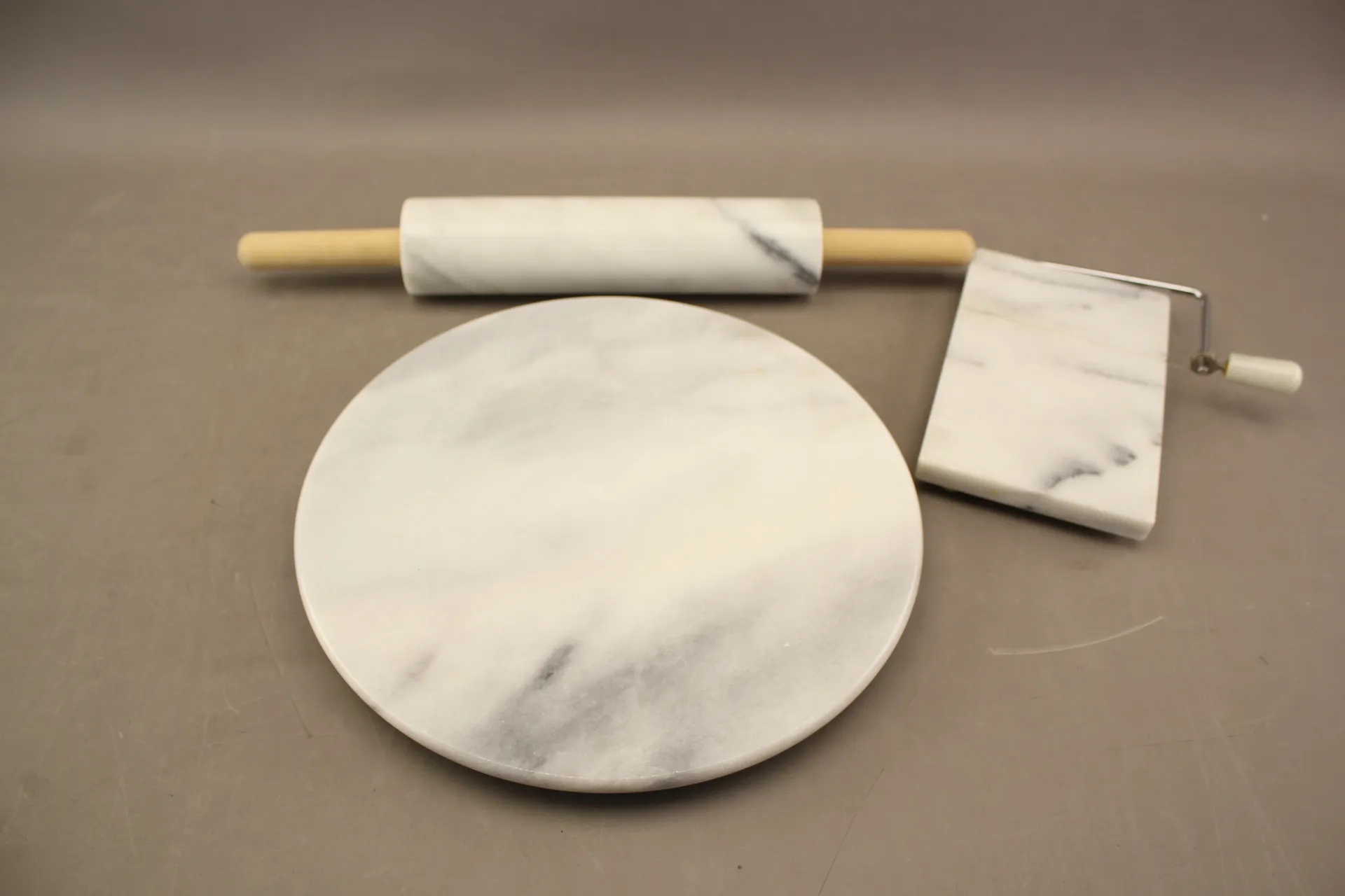 305. Bricka, ostbricka och kavel i marmor