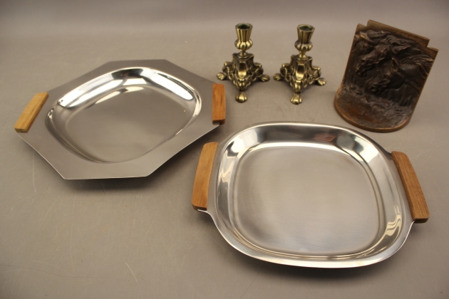 217. Brickor 2 st, bokstöd och ljusstakar 1 par