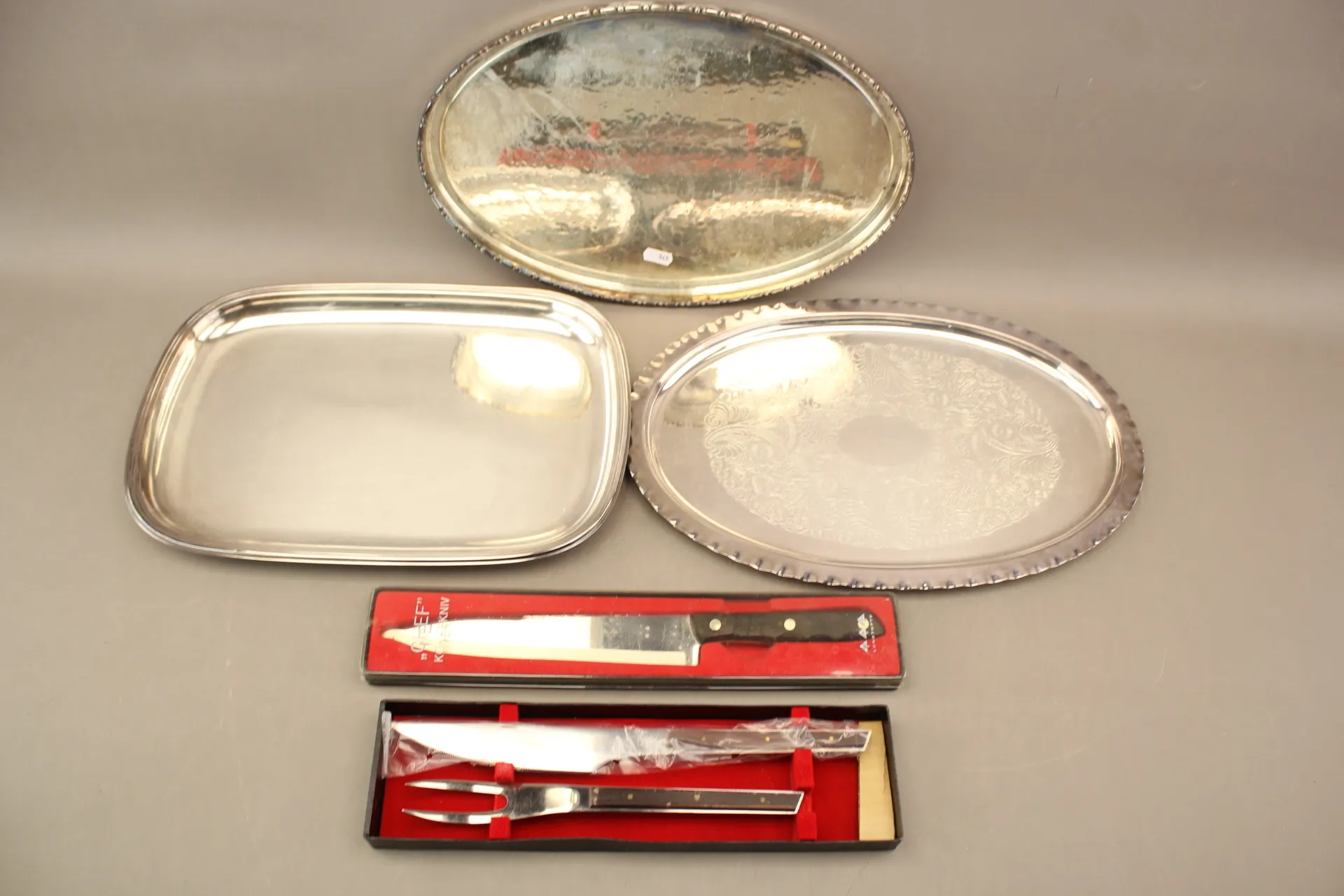 345. Brickor 3 st, kockkniv och trancheringsbestick