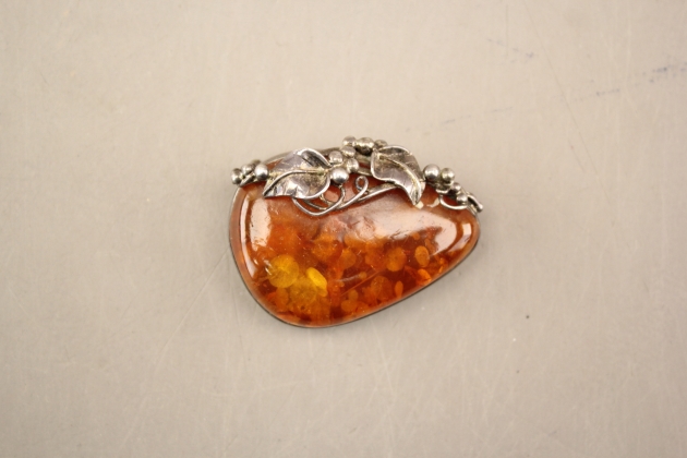 134. Brosch i silver och bärnsten 1920-tal