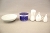 289. Burk med lock "Blå husar", bordsapotek 3 delar Gustavsberg och skål Rörstrand