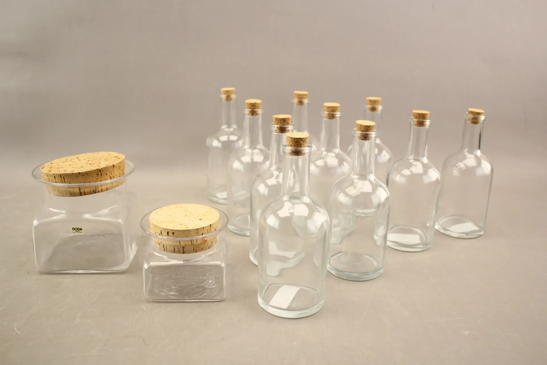 111. Burkar med lock Boda 2 st och flaskor 10 st
