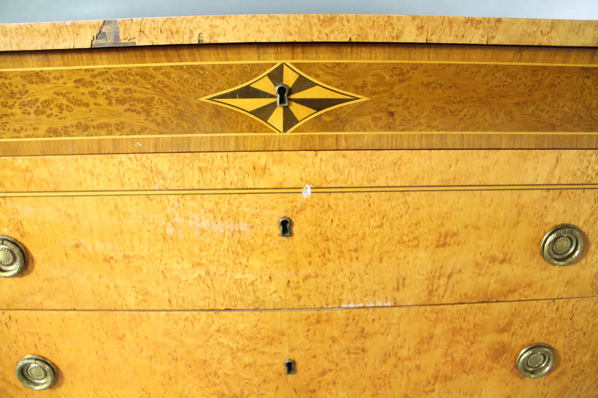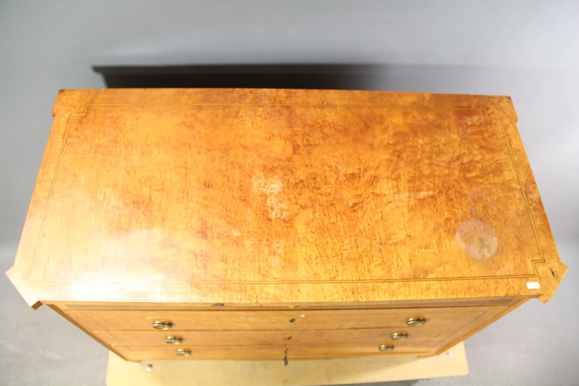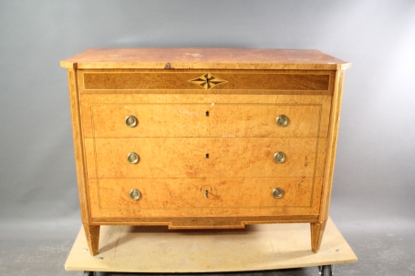 H: 83 cm, 107 x 51 cm, slitage, skador finns, nyckel finns