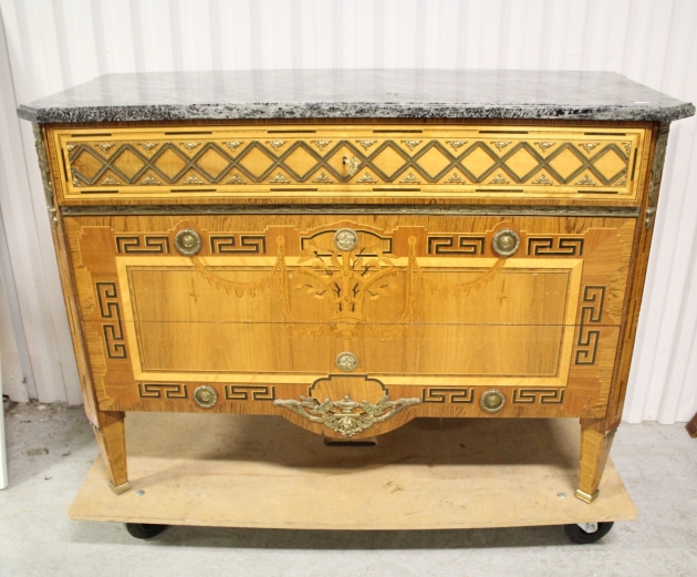 158. Byrå i gustaviansk stil med mässingsbeslag och stenskiva