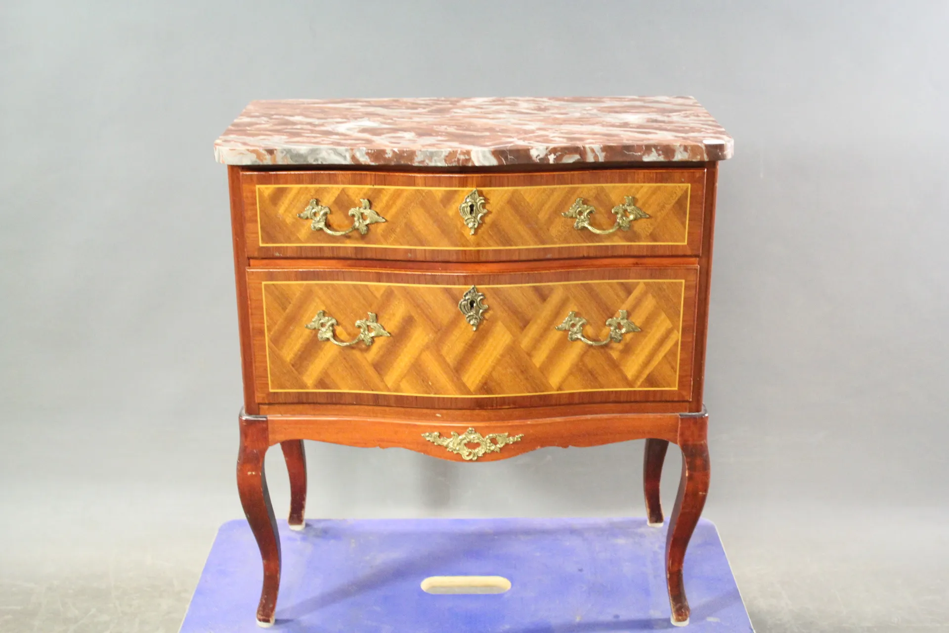 184. Byrå i rokokostil med mässingsbeslag och stenskiva