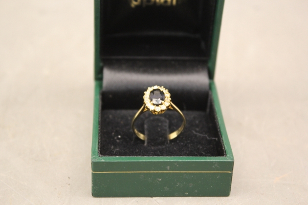 184. Carmosering 18k med briljantslipade diamanter och safir