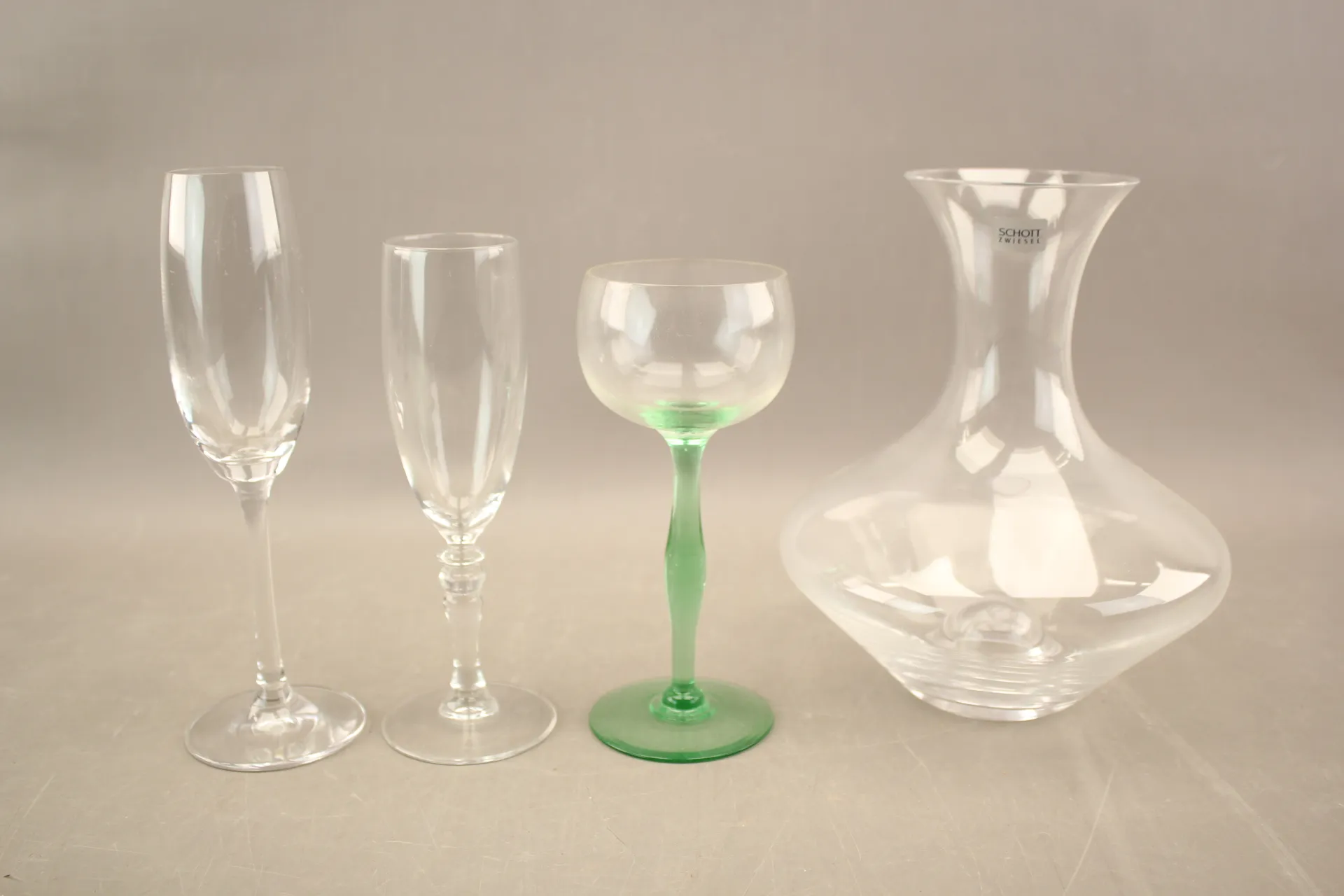 294. Champagneglas 6 + 4 st, vitvinsglas 4 st och karaff