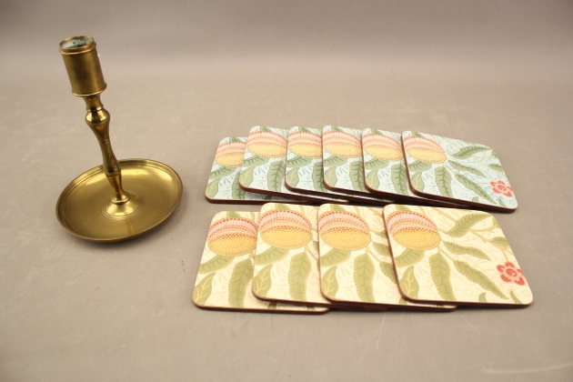 425. Coasters Morris 10 st och ljusstake Skultuna