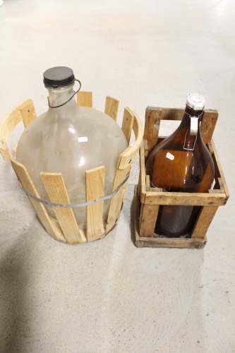 418. Damajeanne och flaska i träställning