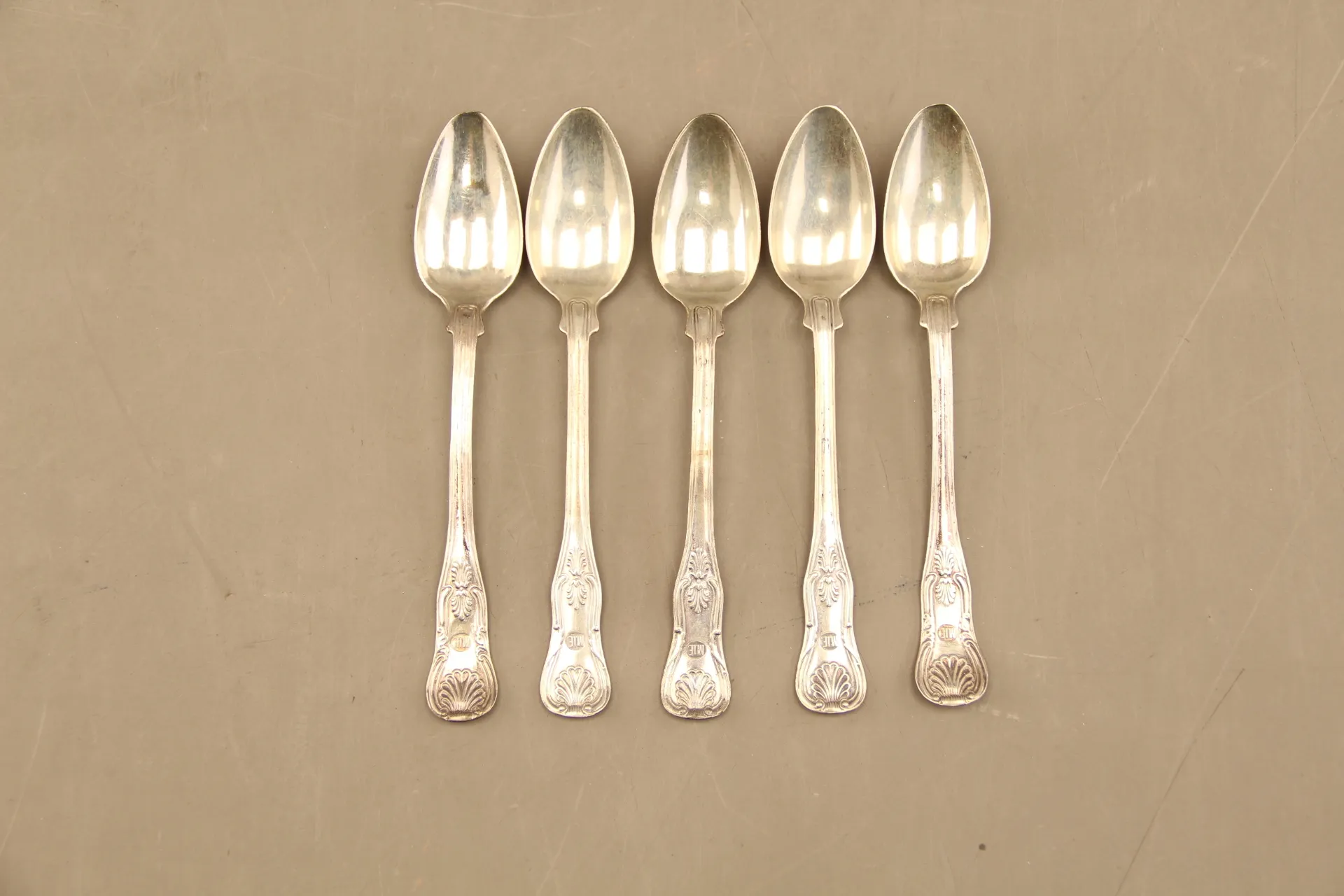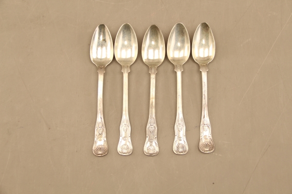 113. Dessertskedar "Engelsk snäck" i silver 5 st