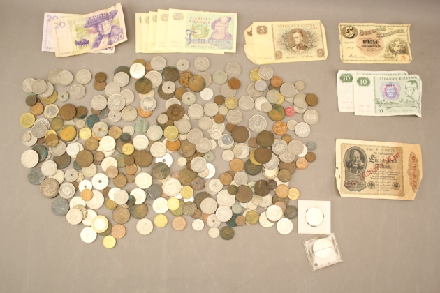 148. Diverse mynt och sedlar