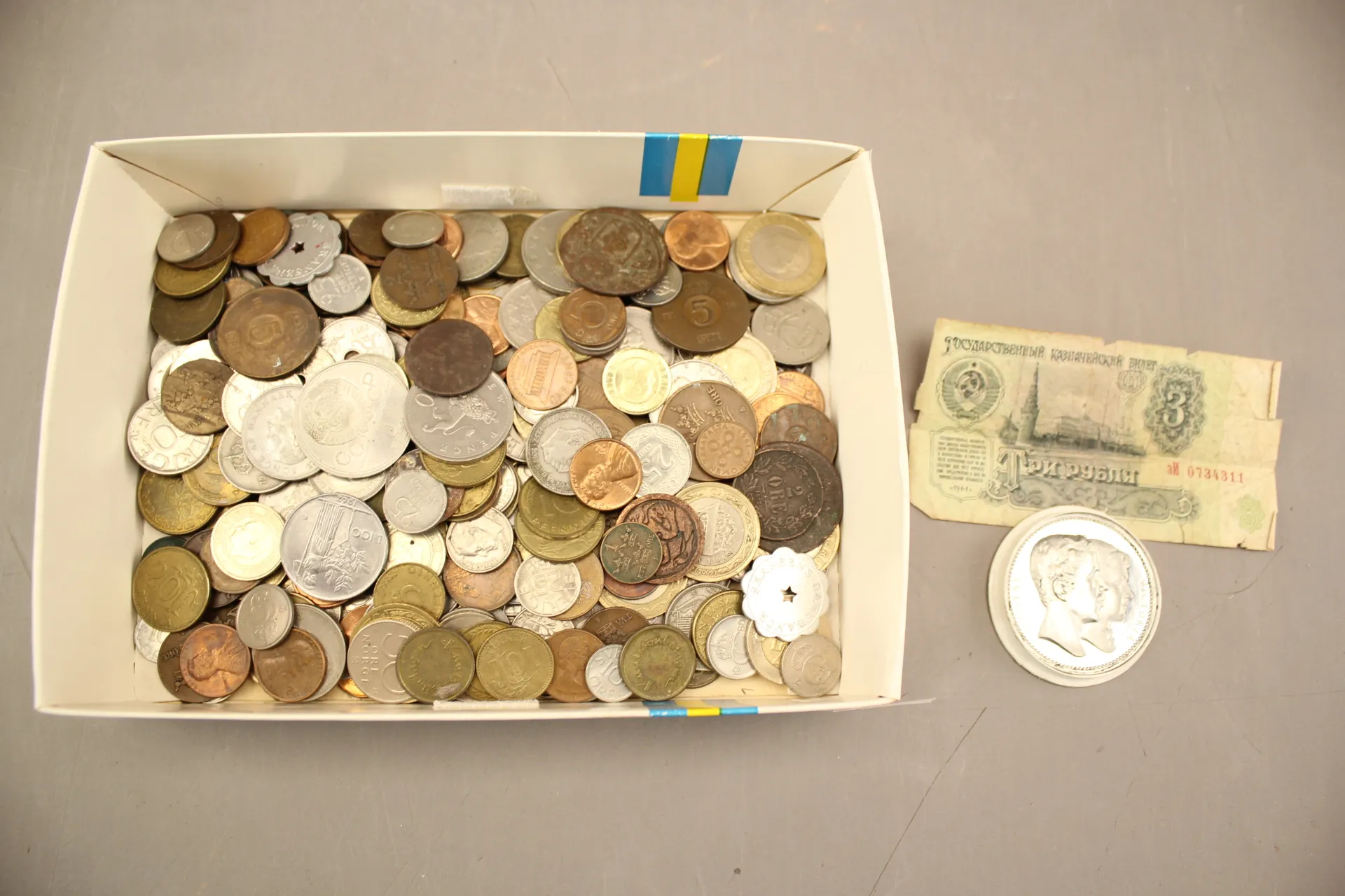 376. Diverse Svenska och utländska mynt bla medalj daterad 1881