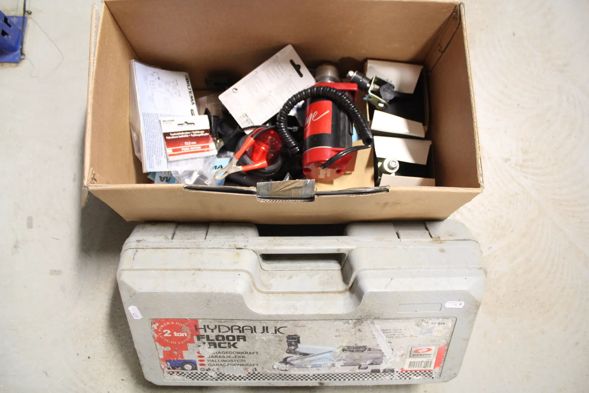457. Domkraft 2 ton och diverselåda