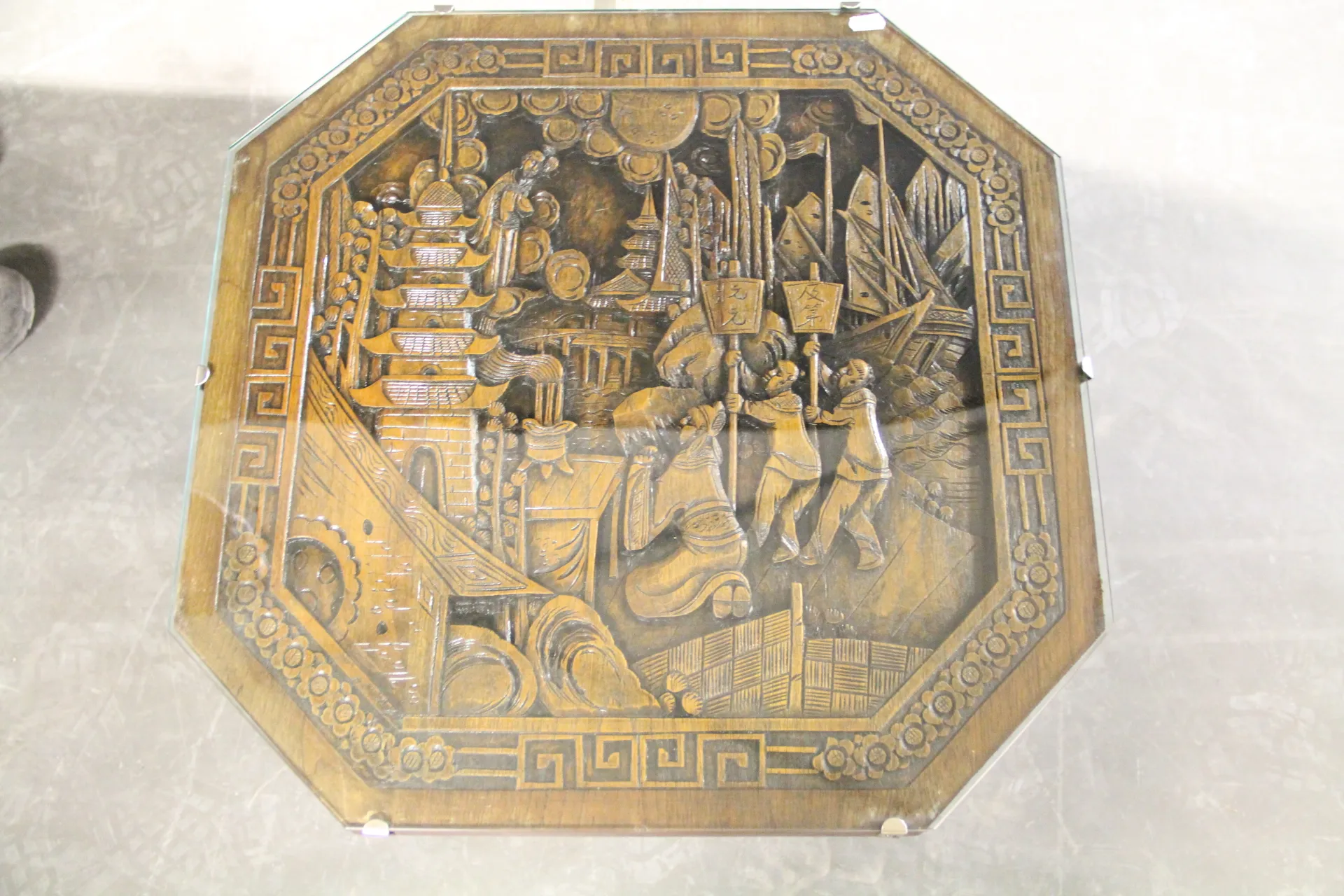 252. Fällbord med snidad dekor och glasskiva 1900-tal