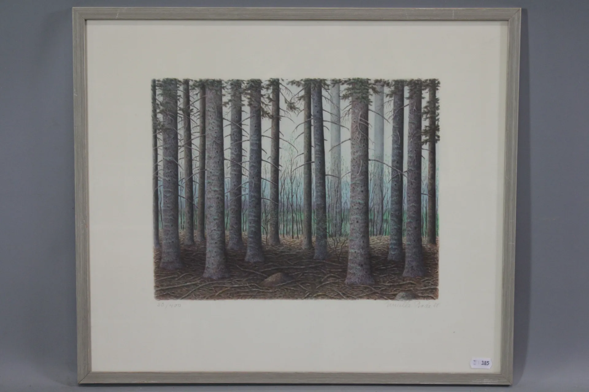 385. Färglitografi sign Gunilla Bade -88, 30/400